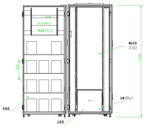 當(dāng)要求超長(zhǎng)后備時(shí)間,例如1小時(shí),2小時(shí)等,如果主機(jī)柜內(nèi)部空間不夠,此時(shí)我們會(huì)配套一個(gè)外形跟主機(jī)柜類似的電池柜,它主要作用是放置后備電池,此電池柜前后側(cè)門各方面技術(shù)參數(shù)參數(shù)與主體機(jī)柜無異,保持外觀一致性,整潔美觀,只是機(jī)柜內(nèi)部不需要有冷熱封閉功能,不需要有監(jiān)控門及其天窗狀態(tài)等。